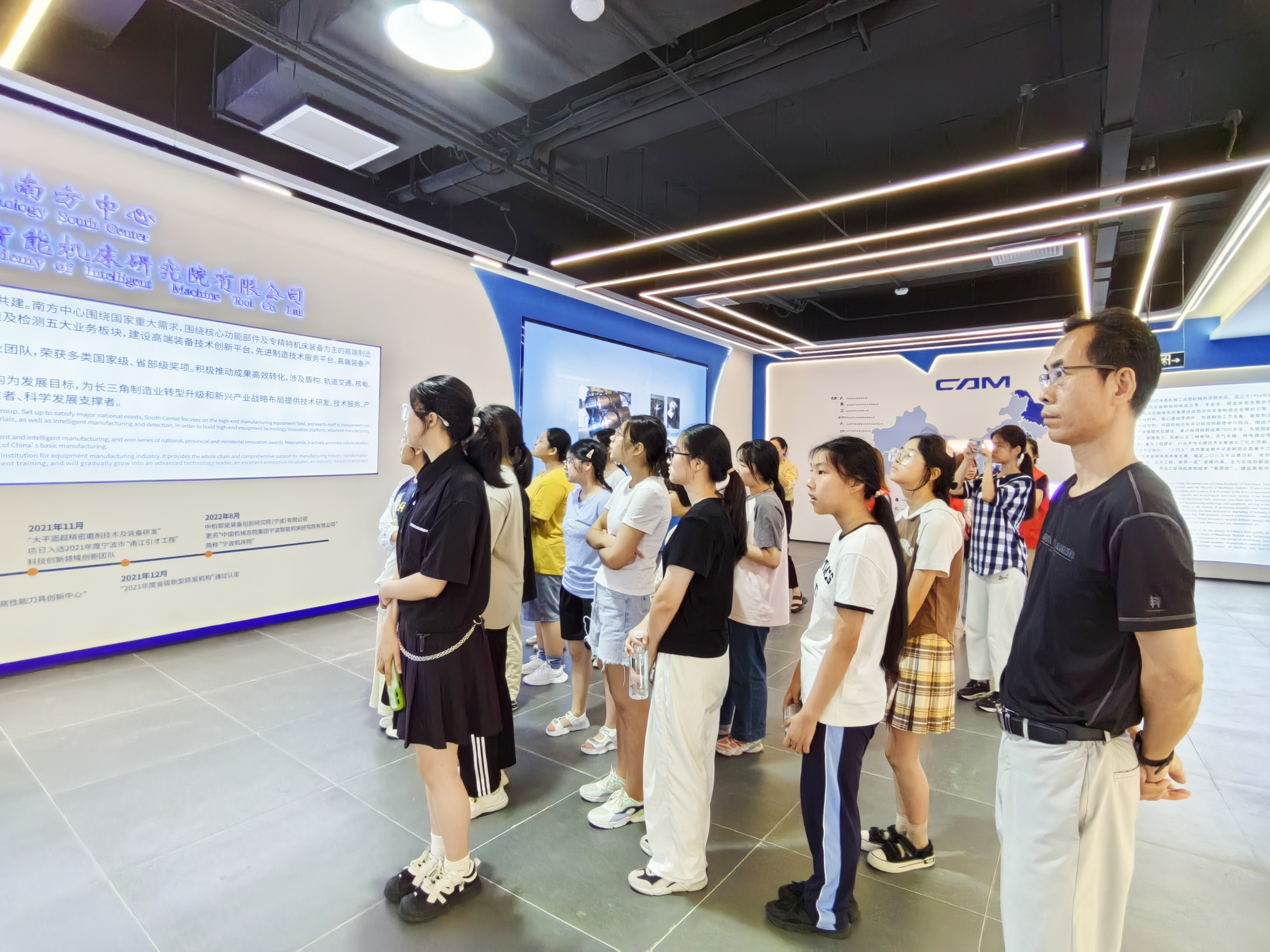 這次活動(dòng),通過(guò)“動(dòng)靜結(jié)合、交流互動(dòng)”等方式展開,在參觀公司展廳,讓學(xué)習(xí)了解寧波機(jī)床院的發(fā)展、建設(shè)歷程、成果成就,了解作為國(guó)資央企服務(wù)國(guó)家發(fā)展大局的使命擔(dān)當(dāng);在參觀實(shí)驗(yàn)室,多角度、全方位了解科研創(chuàng)新、新先技術(shù)發(fā)展等。在交流環(huán)節(jié),2位外國(guó)專家和1位博士分享了如何成長(zhǎng)成才的經(jīng)驗(yàn),鼓勵(lì)學(xué)生提升自信、開闊眼界,努力學(xué)習(xí);分享后,學(xué)生與專家、博士進(jìn)行了互動(dòng)交流。